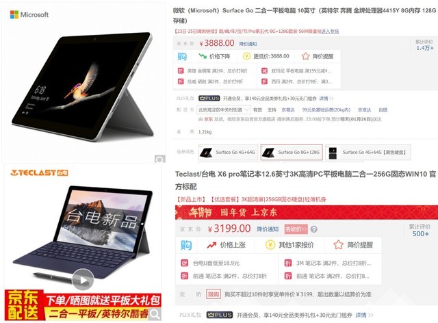 要知道,配置类似,性能还远弱于台电x6 pro的suface go在比它贵689元。这么看来,这款台电平板价格真的已经十分良心了。