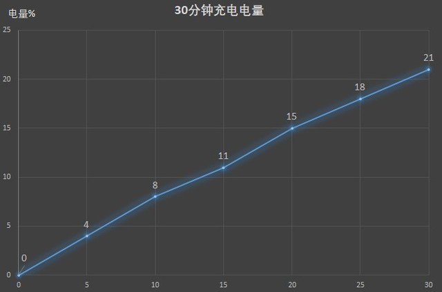 除此之外,酷比魔方x搭载了联发科pe快充,这一点还是让我十分惊喜。我们对酷比魔方x充电速度进行了半小时测试: