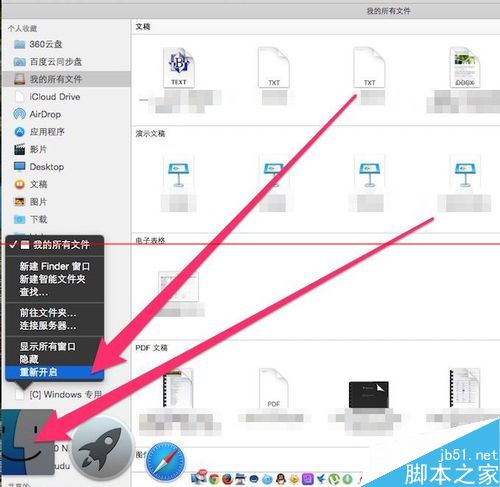 二:选择finder,按"重新启动"