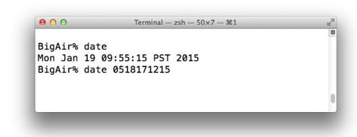 2、为了确定终端日期设置是否解决了该问题重新安装 os x,用户需在“安装os x”启动菜单>命令行,下拉“实用工具’菜单选项,选择’终端”,然后输入以下命令:date点击回车键,如果报告日期是当前日期,那么就能找到该问题的原因了,如图所示: mon jan 19 09:55:15 pst 1984 这一行内容非常重要,以为只有日期正确了才能成功安装 os x,如果改日期遭遇 os x 的发布时期,那么就会出现上述的错误,所以年份特为重要。如果时间错误,有两种方法进行设置,可以设置为自动调整日期,通过网络设置要简单方便一些: ntpdate -u time.apple.com 如果 mac 没有网络访问就不能进行这项设置,因此,用户需要使用手动设置。 如果用户熟悉命令行则可使用 日期-帮助 进行检索,这种日期格式开起来可能会有点怪—“[mm]dd]hh]mm[[cc]yy]”,其实也就是“月日时分年”,这是一行固定格式,在数字之间不 能加入空格和其他符号,比如将日期设置为:“september 20 2016 at 17:33′′,用户可看到以下语法: date 0920173316 这看起来像是一组随机的数字,但其实就是月份09,时间1733,年份16,几个时间组成的。
