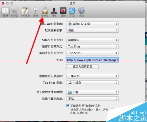 3、在打开的偏好设置中,找到“安全性”选项卡,并点击它