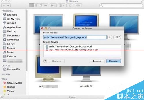 3、此外,这些服务器都会出现在网络窗口中,os x 的所有版本都是如此。