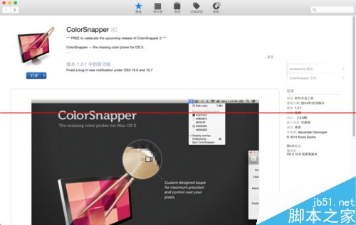 1、从app store中搜索colorsnapper,找到后直接下载就可以