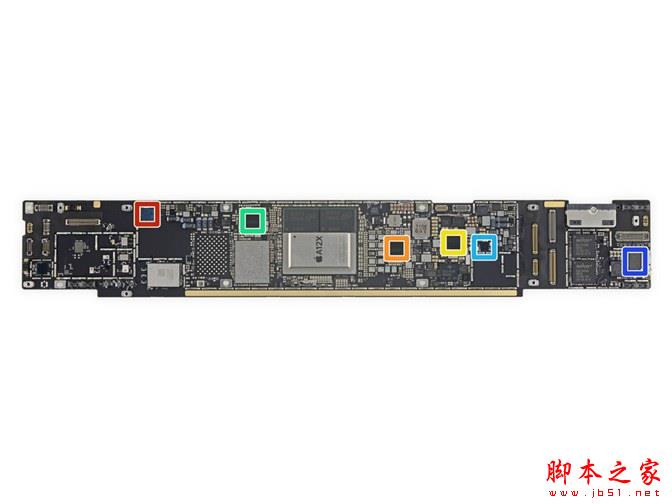 随后 ifixit 将新 ipad pro 主板上的遮蔽盖撕下,便露出了主板的部分,其被胶水固定,而周围密集的扬声器给拆解增加了不少难度。