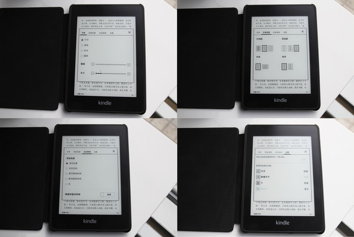 针对不同用户的不同阅读需求,在kindle paperwhite的阅读界面,用户可自行设置包括字体、页面设置、正在阅读(阅读显示)、主题等功能。在这些功能中,用户不仅可以调节阅读文字字体以及大小,而且可以设置文字的行间距、页间距、文字方向等,方便不同用户在不同角度下体验阅读。