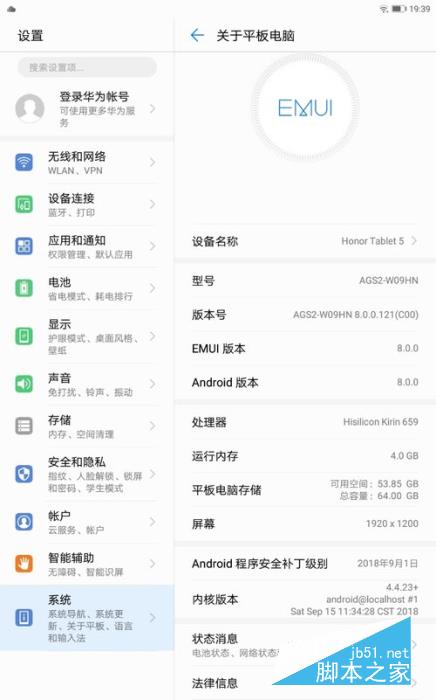 荣耀平板5系统信息