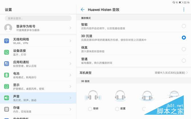 荣耀平板5的定位是影音娱乐平板,除了屏幕高清画质显示,在音效视听方面也是狠下功夫。机身底部两侧的开孔就是对称设计的立体声双扬声器,此外还有哈曼卡顿金耳朵调音、华为2012实验室histen5.0声场扩展技术,三位一体,能够营造出天籁般的特调音效。