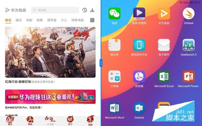 打开一个应用,比如正在玩游戏或者看视频,双指从屏幕的底部向上滑,就会显示两个界面,此时可以打开另一个应用,比如微信、qq,实现一边看视频,一边聊天,两不耽误。此外,按住分界线中间的按钮进行拖动,还可以调节左右屏幕的大小,是不是很方便?