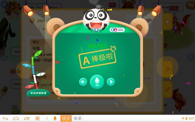 在英语同步学习中,同步课文的朗读发音标准且清晰,针对不会的单词,还有新东方名师独家录制的《名师词汇》视频课程详细讲解。优学派还有与服务多地中高考听说考试的“驰声科技”联合打造的跟读评测功能,读的对不对,准不准,都有多维度的评分,让孩子发音更标准。