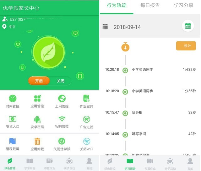 此外,家长还可通过手机端app进行远程智能管控。关闭/开启安卓平台、设置孩子使用时长、上网管控等,还能每天接收孩子的智能学习报告;哪怕是爸爸妈妈出差在外,孩子的学习情况也能一手掌握。