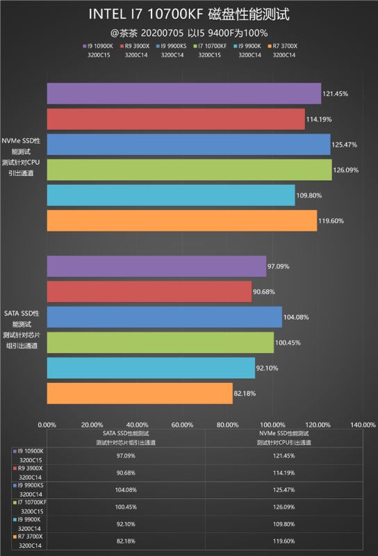 在磁盘性能上,i7-10700kf同样继承了10代cpu的优点,表现相当不错。