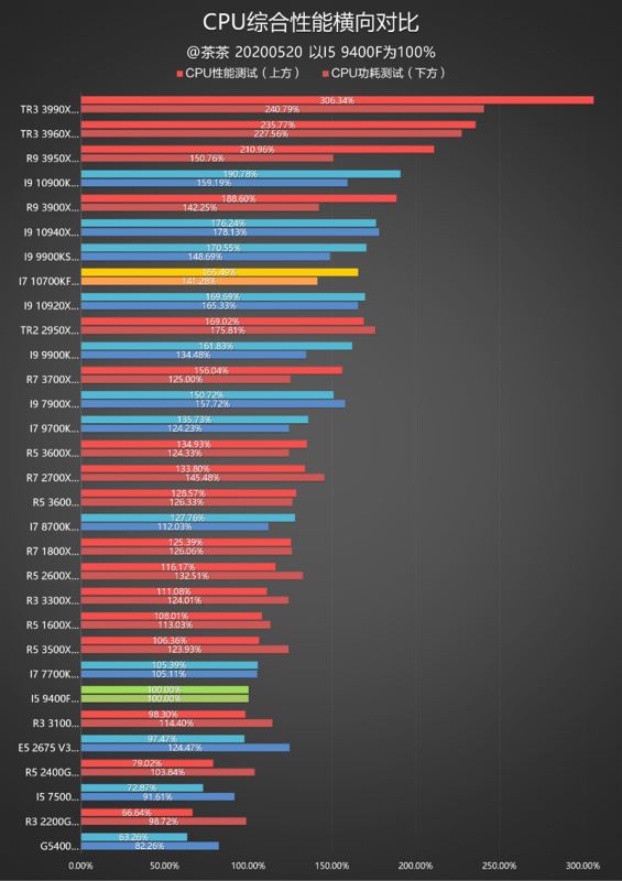 游戏性能上,i7-10700kf则通过更好的功耗策略和更容易保持高频的优势,成为了目前游戏性能最强的一款cpu。