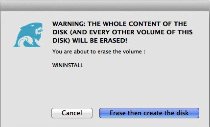 第六步:完成选择后,再次确认需要被格式化的 u 盘。随后选择 erase then create the disk,格式化并创建安装 u 盘。