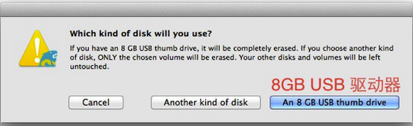 第四步:随后,我们需要选择安装 u 盘,diskmaker x 支持 u 盘以及其他外置储存器,容量8gb 的 u 盘就够了。