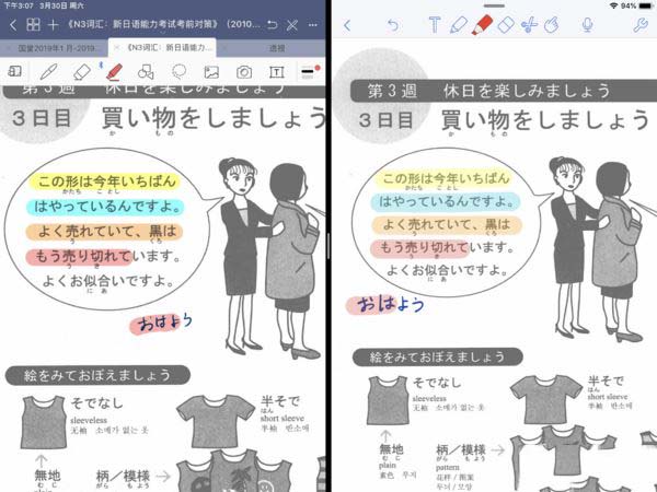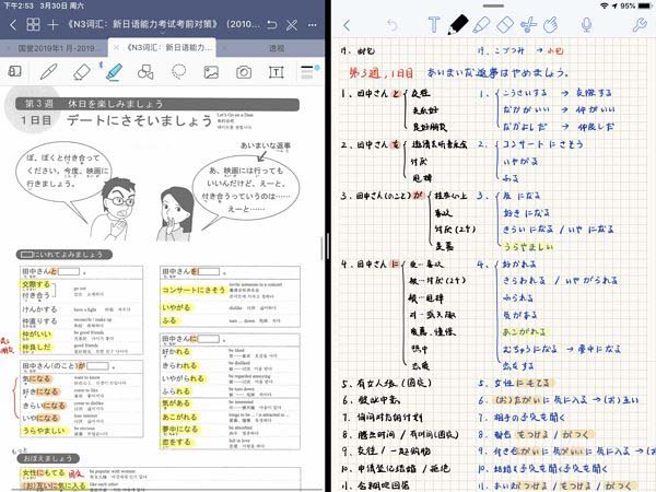 还有一个使用场景就是左边放goodnotes的pdf书,右边用notability做笔记(下图)。