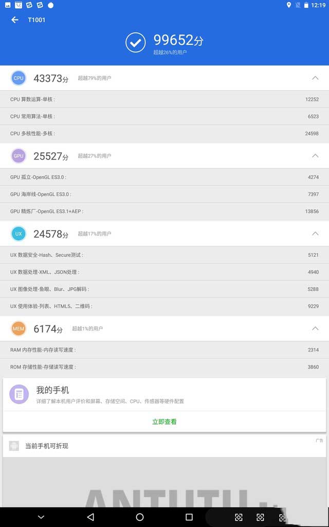至于跑分方面,笔者使用安兔兔对其进行了测试,接近99652的分数也证明helio x20在性能上还是值得肯定的,相比同类平板电脑性能上也有不小的提升,与android 8系统相匹配,整体运行效果还是比较流畅的。