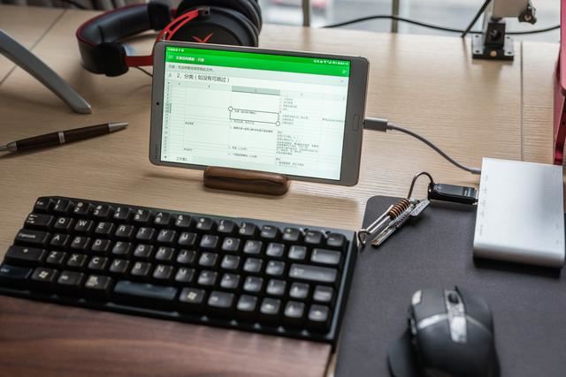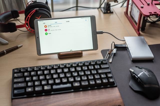 比如我这边就用了一套宜丽客的type-c外接扩展器,来接存储设备跟鼠标的接收器,键盘部分我用自己的蓝牙机械键盘来替代,这样最简单的“电脑化”就变成了。当然如果你觉得麻烦,也完全可以选择10寸版本,然后搭配官方的键盘,甚至pro版还可以选择华为的手写笔。