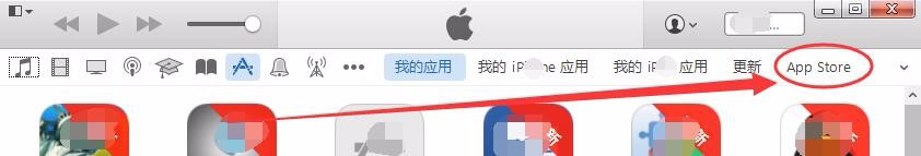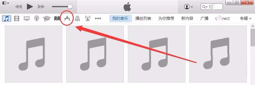 4、在itunes主界面中,选择应用图标,如下图所示。