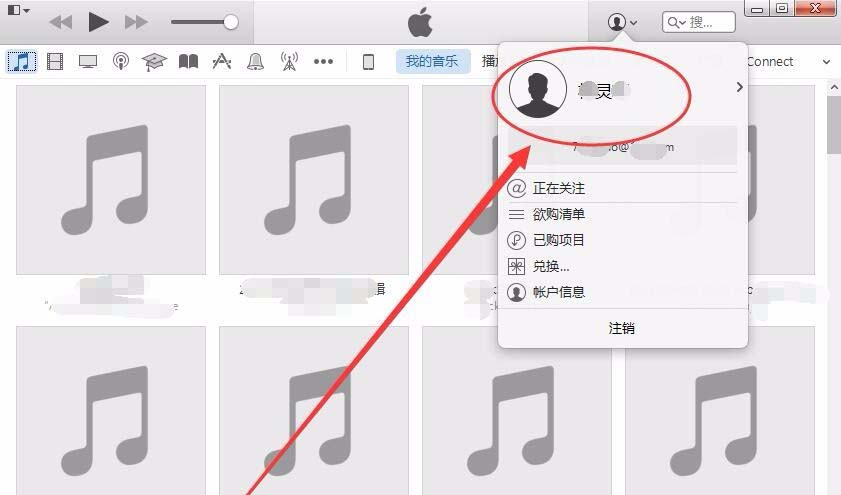 3、打开itunes后,右上方会有苹果机的帐号,说明苹果机已连接上itunes。