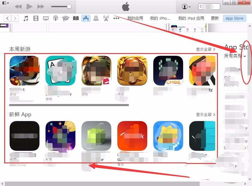 6、将右侧的滚动条往下拉,可以查看各类应用程序。