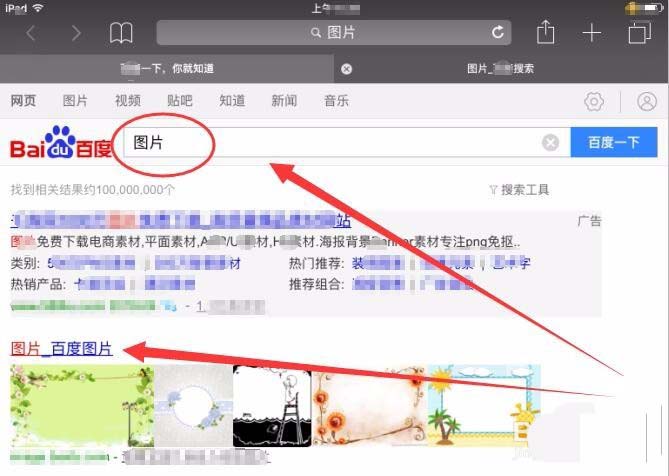 3、在百度搜索中,输入内容图片,点击进入图片页面。