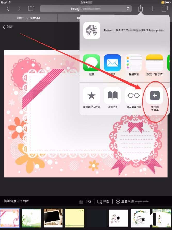 7、在出现的下拉菜单中,选择添加到主屏幕选项。