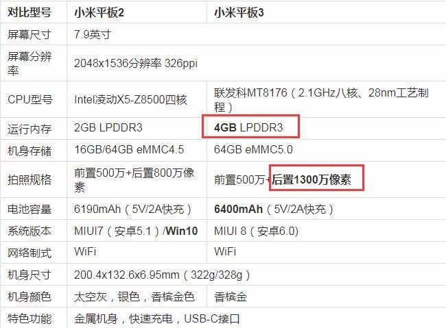 3、在拍摄方面:小米平板3相比小米平板2主要是提升了后置摄像头像素。