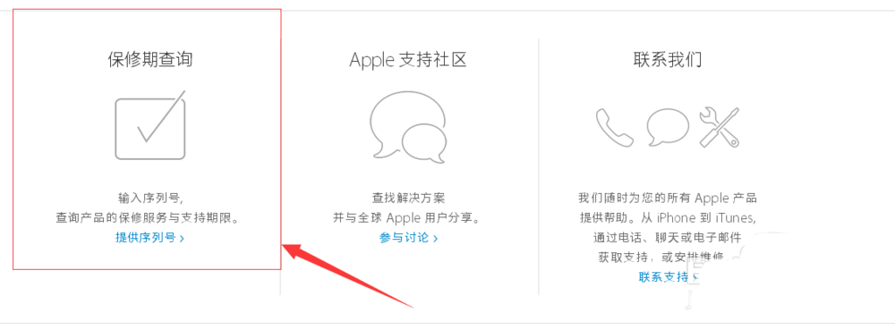 2、在技术支持页面的中间部分这里可以看到“保修期查询”。这里查看ipad mini的保修时间。