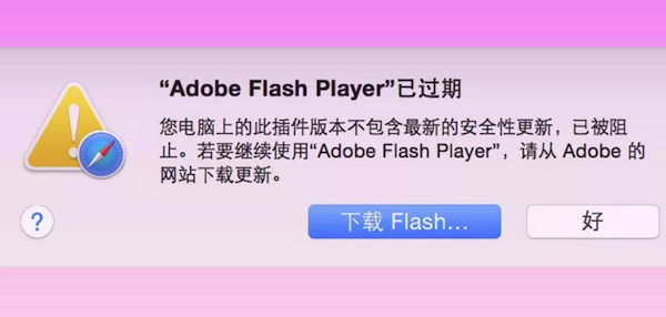 有用户遇到在mac上看在线视频或浏览某些网站的时候总显示flash已过期,需要下载新的版本,可是到adobe官网也没看到更新信息。原来出于安全顾虑,苹果目前在mac上 os x系统里已经远程屏蔽了所有版本的 adobe flash player插件。包括刚发布的 16.0.0.235,以及较老版本 13.0.0.259,都在屏蔽名单中。用户在使用safari浏览器访问 flash 内容时,将会收到插件已拦截、flash 安全警告、flash 过期等提示信息。