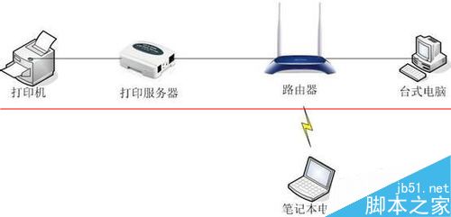 1、以下为通常情况下使用打印服务器的网络结构图。