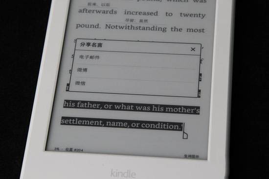 这些新功能无论是对于学生党还是上班族或者阅读达人来说都是非常实用的。有朋友需要利用外文书籍学习外文,生词提示和kindle智能推荐一来可以辅助提升词汇量,另外还能够根据读着不同的语言水平推荐适合读者level的优秀书目;而有读者则非常乐于将自己读到的章节和感受与书友分享,微信微博这些社交工具与kindle的结合则使得分享变得更加简单。