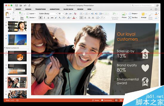 重新设计的针对os x系统的word、excel和 powerpoint与office运行在不同平台上的各个版本保持一致,也就说如果你mac上运行的office里一个功能位于插入标签里,那么安卓平板电脑上这个功能也将位于插入标签里。此外,还有一个新的任务窗格界面,微软希望放在合适位置、调整大小、旋转图形等操作变得更加容易,此外还有新的主题和样式帮助你整理文档。此外还加入了全屏预览和例如滚动反弹等“mac功能可见性”特征。微软表示,“很明显这是office——但它精心设计巧妙的利用了mac的独特特征。”