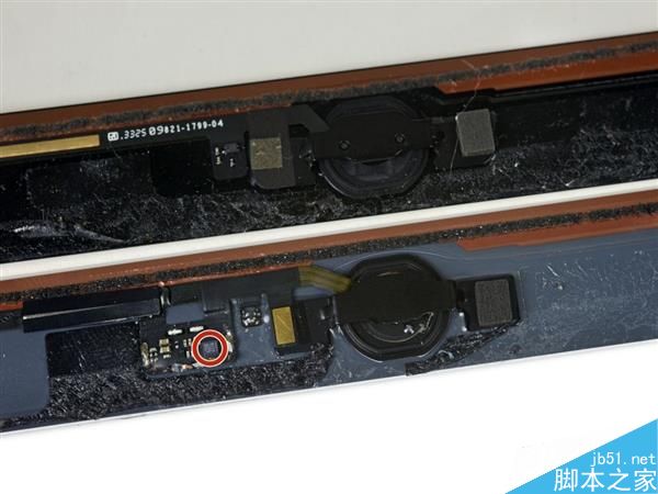 翻转数字转换器,其背面显示了它和初代ipad air最大的不同:那就是touch id及其相关硬件的加入。