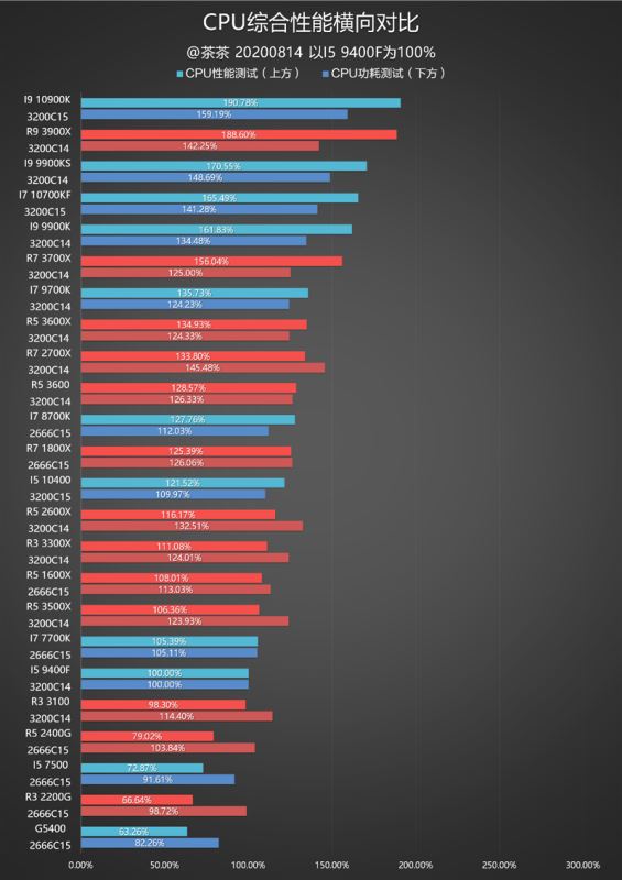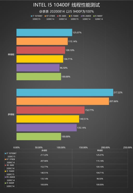 - 这次的测试对比组是i7-10700kf、锐龙7 3700x、锐龙5 3600、锐龙5 2600x、i5-9400f,100%标杆依然是i5-9400f。
