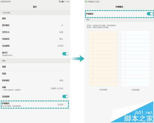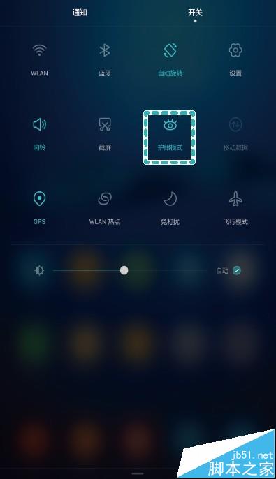 2、开启护眼模式后,手机会自动调整背光亮度和显示色温,同时会有效过滤屏幕显示的蓝光,保护您的眼睛。开启后屏幕显示偏黄为正常现象哈。还有一种快捷方式,从状态栏处向下滑动,打开通知面板,在【开关】页签中,点击【护眼模式】快捷开关也可以开启或关闭护眼模式。