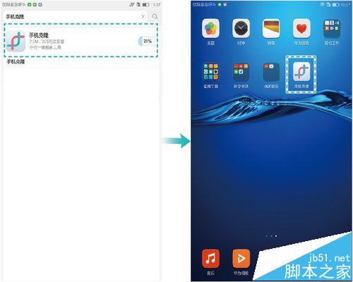 下载手机克隆。进入应用市场,分别给两台设备下载安装手机克隆。