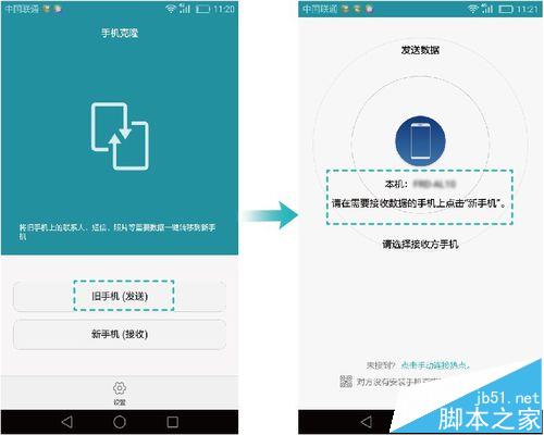 1、连接新旧手机。旧设备(传送数据的手机或平板)选定要连接的新平板,新旧设备建立连接。在旧手机或者平板上点击手机克隆,然后先选择【旧手机(发送)】,点击后开始搜索并等待同新手机的连接。