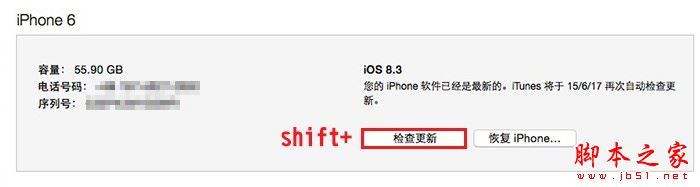 4、然后按住键盘上的 shift(option),同时鼠标点击 itunes 界面的【检查更新】按钮,再选择对应版本的 ios 10固件进行升级。