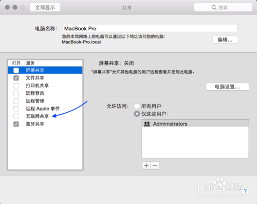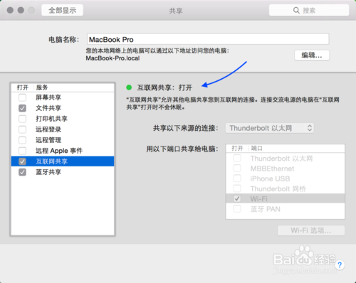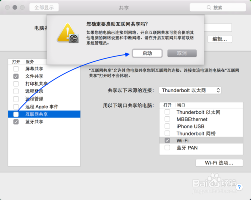 注:如果你的mac是用有线拨号上网的话,请选择ppoe作为共享源。