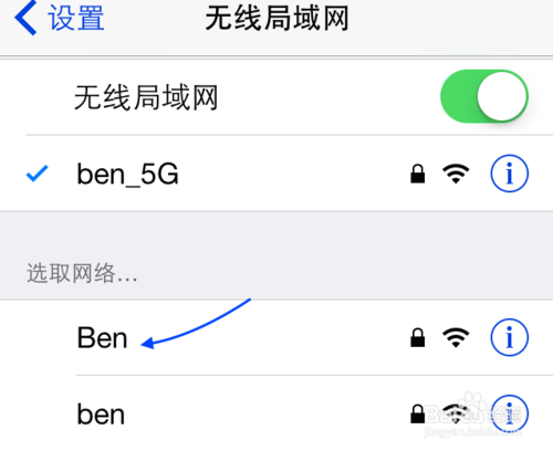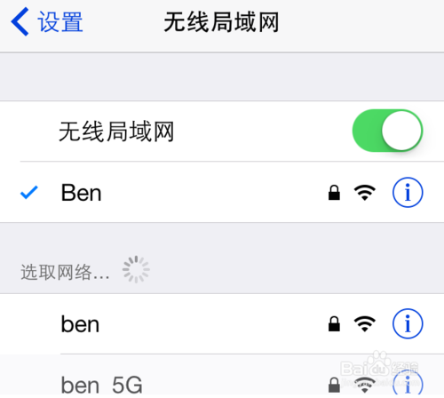 接下来我们用其它设备来尝试用 mac 共享的 wifi 热点,这里以 iphone 为例,在无线列表中可以看到 mac 设置的无线热点,那个以大写 b 开头的无线就是。