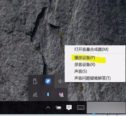 1、左键点击屏幕右下角的小喇叭,选择“播放设备p”。