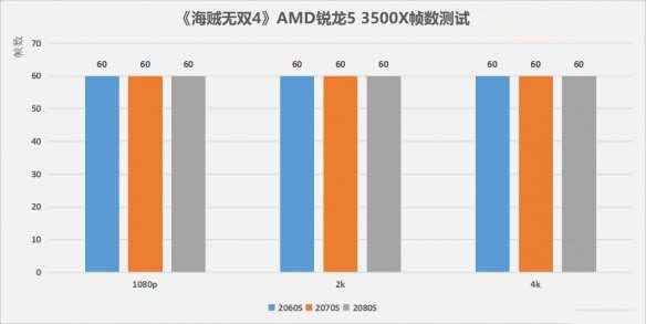 经过测试后我们可以在结果中发现游戏最高帧数锁定了60帧,而本次测试在使用不同的cpu、显卡和分辨率下,游戏几乎都能以稳定60帧流畅运行。要知道《海贼无双4》作为割草游戏海量小兵齐聚一屏然后被打得满天飞可谓家常便饭,而往往这样场景相当考验cpu性能。锐龙5 3500x和酷睿i5 9400f在测试中能轻松应对这样的状况,尤其是使用2060s显卡时也能在4k下稳60帧运行,可以看出两者在游戏稳定性方面也是实力相当。