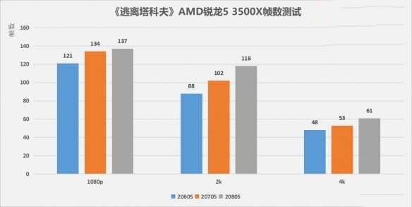 作为一款网络对战的fps+rpg元素的游戏,《逃离塔科夫》对于帧数的要求相对其他类型的游戏自然更为重要。经测试后结果显示,在1080p分辨率下酷睿i5 9400f结合三款显卡表现出的帧率要显著高于搭载锐龙5 3500x时的表现。而在2k分辨率下,两者之间的差距缩小到了10帧左右。4k分辨率下帧数表现则更为接近了,帧数差距低至个位数,即使对于fps来说也可忽略不计。