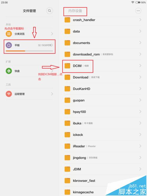 2、再点击“平板”图标,然后找到“dcim相册'图标,点击它