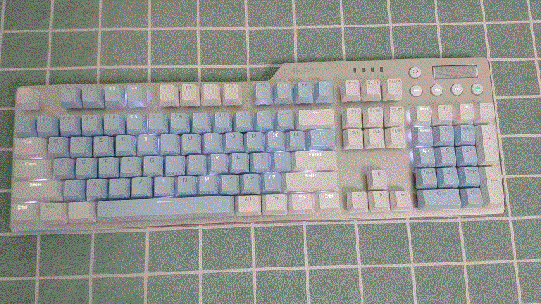 键盘采用白色背景灯,支持落雨、流星、常亮、呼吸、光波、雨滴、跑马、聚合、跟随、正玄波、线性波浪、单点灭、激光、涟漪、园波、炫目、万花筒等17种光效,同时按下fn+x键关闭键盘的背光。有点遗憾的就是不支持rgb灯效,单光状态下灯效效果不够酷炫,期待黑爵后续会不会发布rgb版本,不过可能rgb灯版本的价格也会稍稍贵一点吧,这种小细节就看个人爱好需求了。