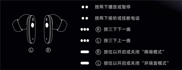 此外,魅蓝blus主动降噪耳机预设有多种手势操控。像简单的点按播放、暂停,切歌和接通电话,长按还可以在降噪模式、通透模式和普通模式间切换,并伴有人声提醒,日常使用非常方便。
