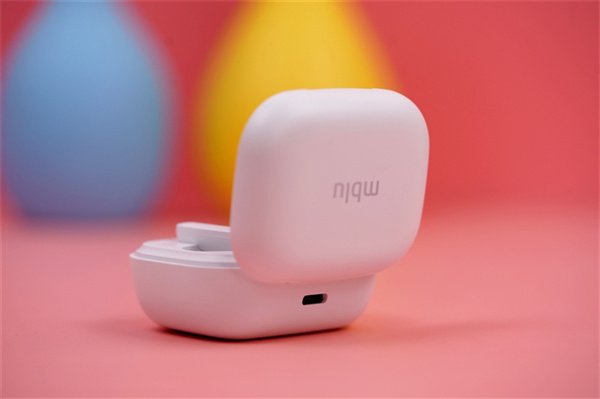 魅蓝blus主动降噪耳机采用简约的白色包装,正面印有产品渲染图和名称。顶部侧面其实还有熟悉的蓝色魅蓝logo。充电盒采用的是类似“化妆盒”的开启方式,表面多层涂料外加类肤质处理,手感细腻也不容易出现刮痕。