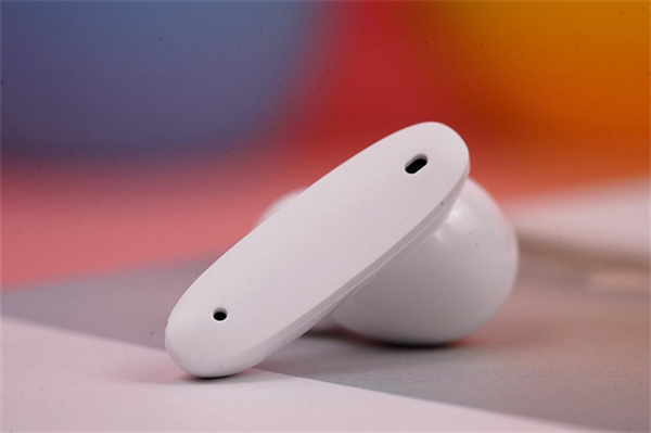 耳机采用双麦克风的设计,耳机柱底部各有一个麦克风开孔,上方还有降噪用的前馈麦克风开孔,可以采集环境音、噪声等。耳机内侧,金属网下为调音孔,可以稳定压力,调整耳机内部的声音。值得一提的是,魅蓝blus主动降噪耳机并不支持佩戴检测,所以靠前的开孔仅仅是个摆设。