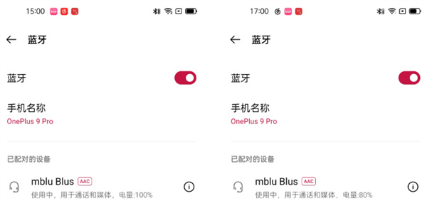 续航方面,在普通模式、50%音量下,使用魅蓝blus主动降噪耳机听歌。由于搭配第三方设备仅显示主耳机的电量,因此数据虽然显示掉电20%,但两个耳机综合来看,掉电在30%左右。也就是说,魅蓝blus主动降噪耳机的单次连续使用续航可达6小时,戴上听一个上午或者下午基本不成问题。