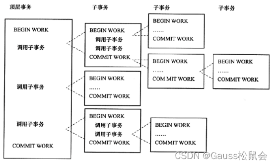 gaussdb允许事务嵌套,一个事务可以包含另一个事务。嵌套事务可以独立于外部事务进行提交或回滚。